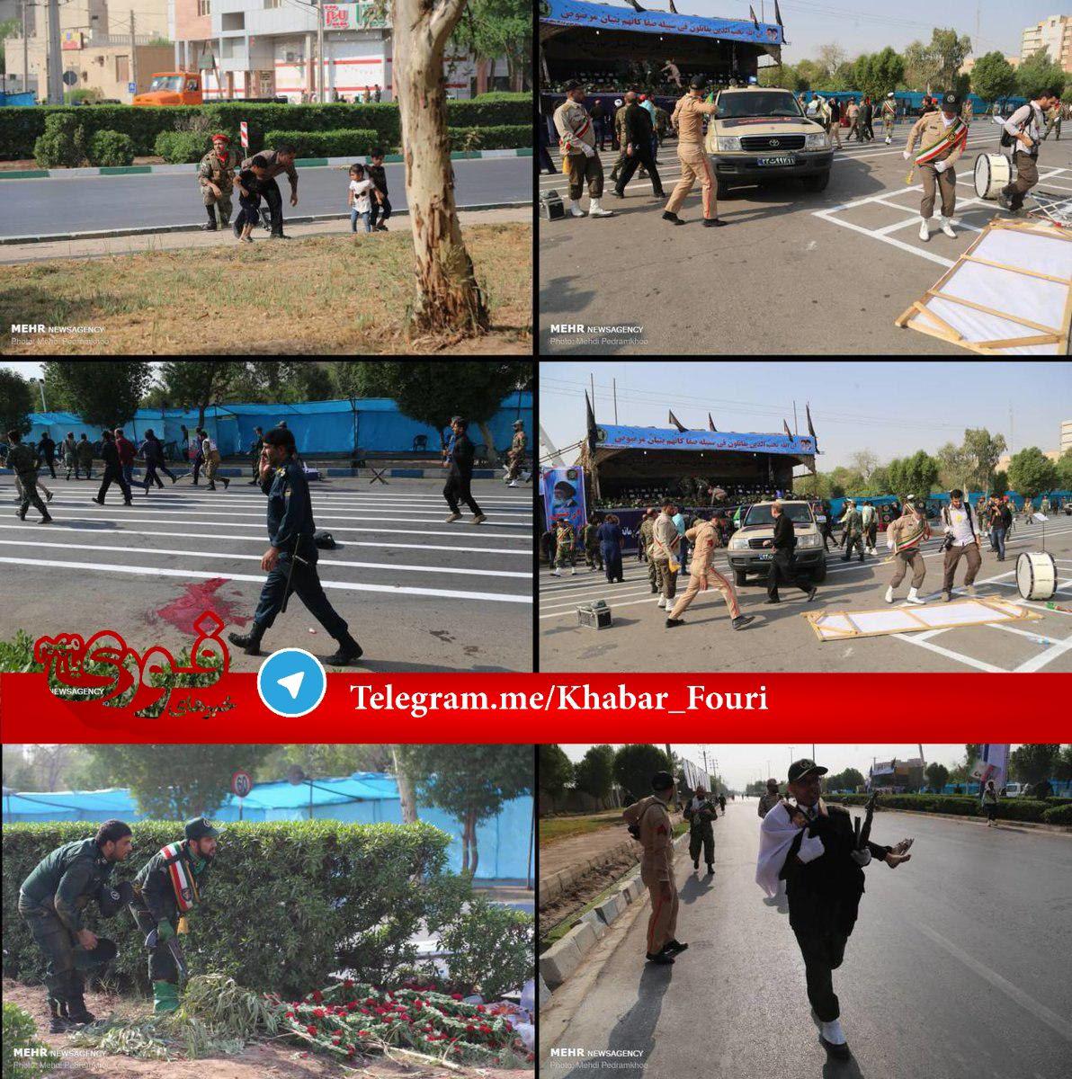 تیم تروریستی پس از تیراندازی به سوی مراسم رژه از محل گریختهاند و در حال حاضر نیروهای امنیتی در تعقیب آنها هستند.