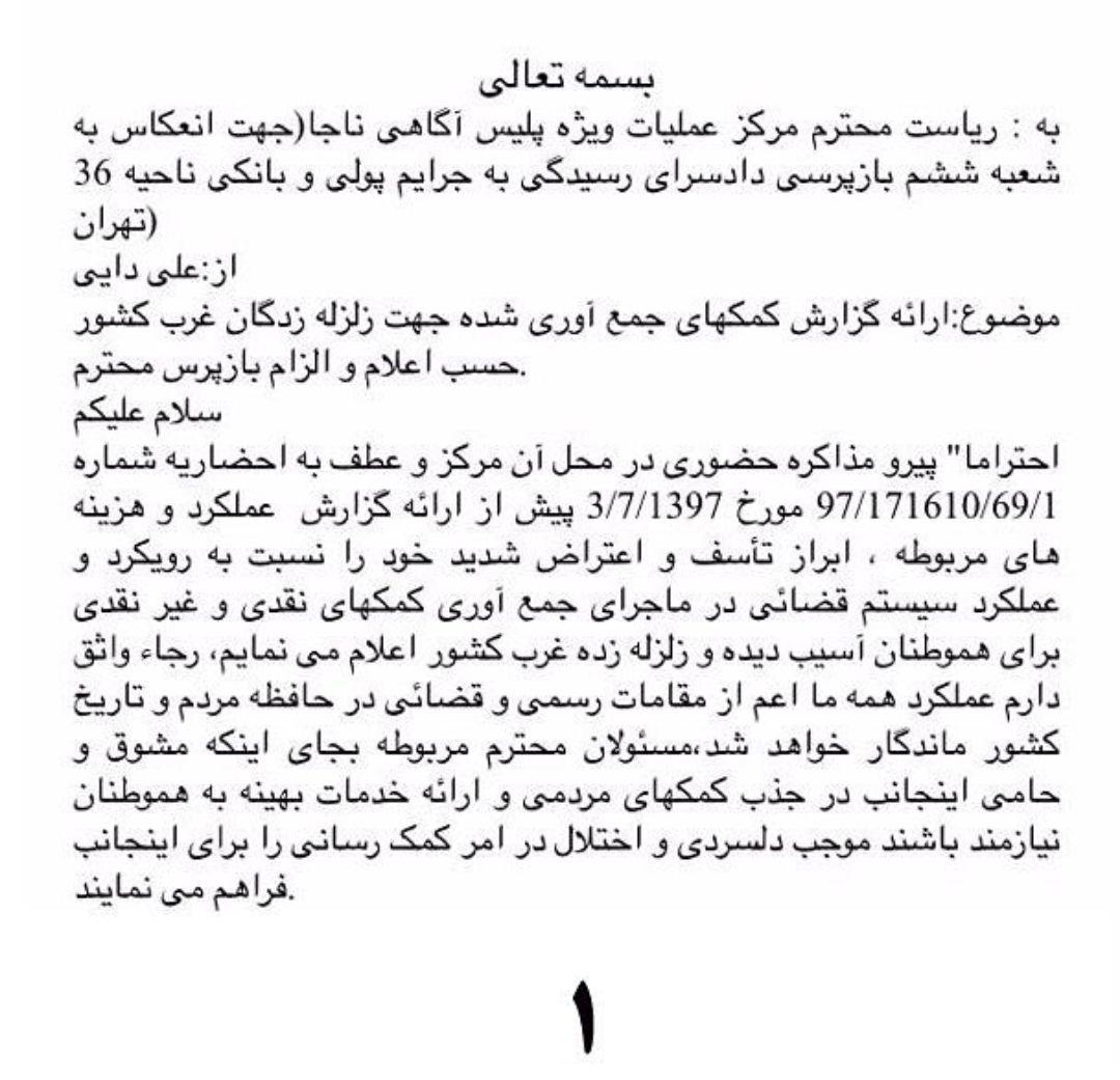 اما علی دایی دقایقی قبل در پیامی خبر داد که بخاطر ورود به این مسئله، جمعآوری کمکهای مردمی و ساخت و سازهایی که بعد از زلزله کرمانشاه انجام داده، به دادگاه احضار شده است.